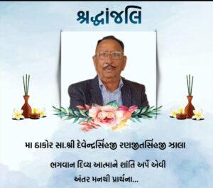 અરવલ્લી જિલ્લાના બાયડ તાલુકા ના ગાબટ સ્ટેટના માનનીય ઠાકોરસાહેબ શ્રી દેવેન્દ્રસિંહજી ઝાલા નું તા. 30 ઓગસ્ટે અવસાન...