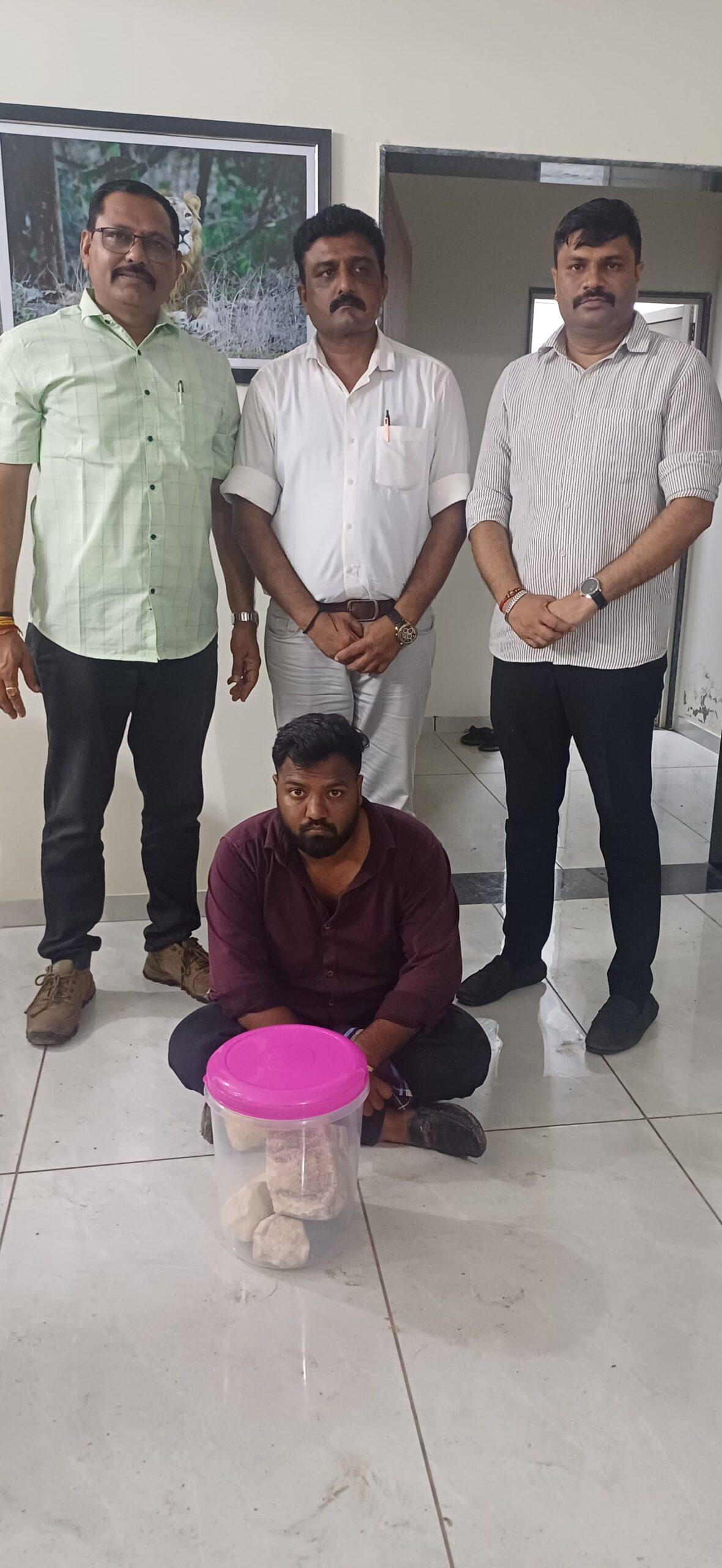 પોલીસે સ્થળ પરથી સુરશભાઈ વાઘેલા (રહે-પ્લોટ નંબર-૨૩, મોહનનગર, સીતસર રોડ, લીલા સર્કલ, ભાવનગર) નામના વ્યક્તિને ઝડપી પાડ્યો હતો. તેની પાસેથી ૩ કિલો ૬૮૦ ગ્રામ એમ્બરગ્રીસ મળી આવ્યું હતું. આ ઉપરાંત, તેની પાસેથી એક મોબાઈલ ફોન પણ જપ્ત કરવામાં આવ્યો, જેની કિંમત રૂ. ૧૫,૦૦૦/- છે.